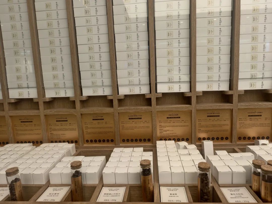 在0566咖啡制造所,咖啡豆像糖果一样被一盒一盒、一管一管、一袋一袋呈现,原料多形成的视觉冲击力足以让人驻足。