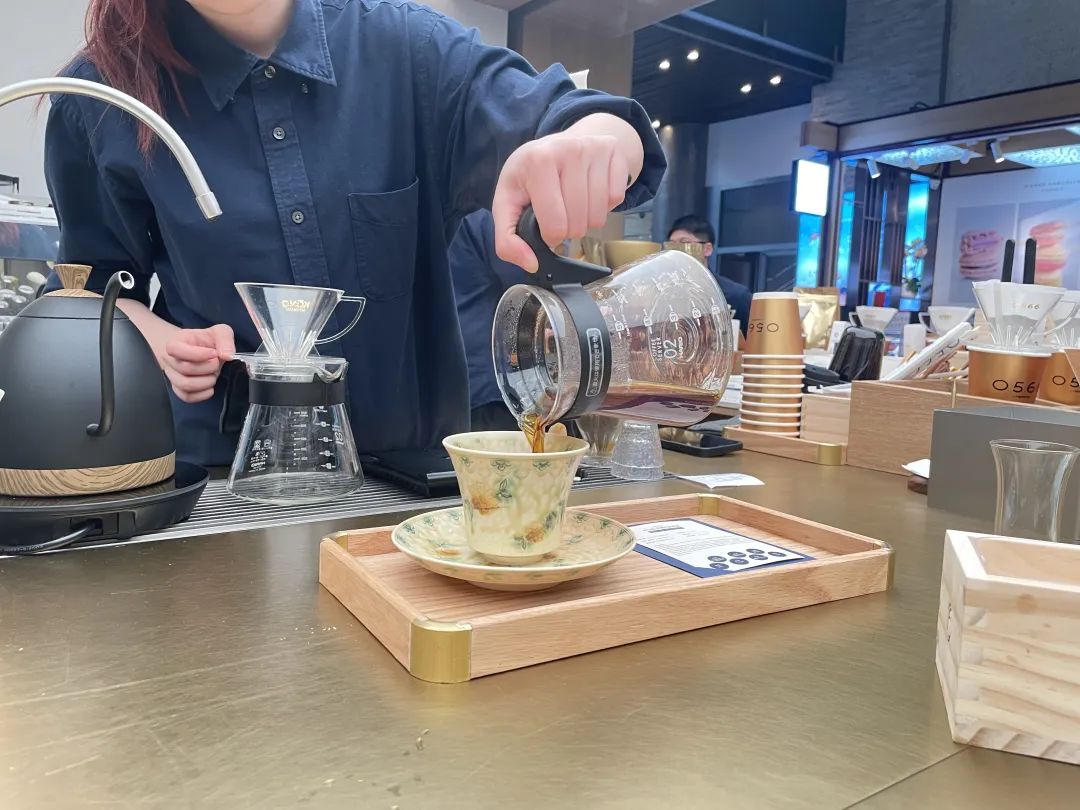 当顾客被专业度吸引,咖啡师会邀请品尝手冲,木质托盘、骨瓷杯子、精心设计的豆卡,以及多段式手冲的“现场表演”,都会让顾客对杯中之物产生更多好感。